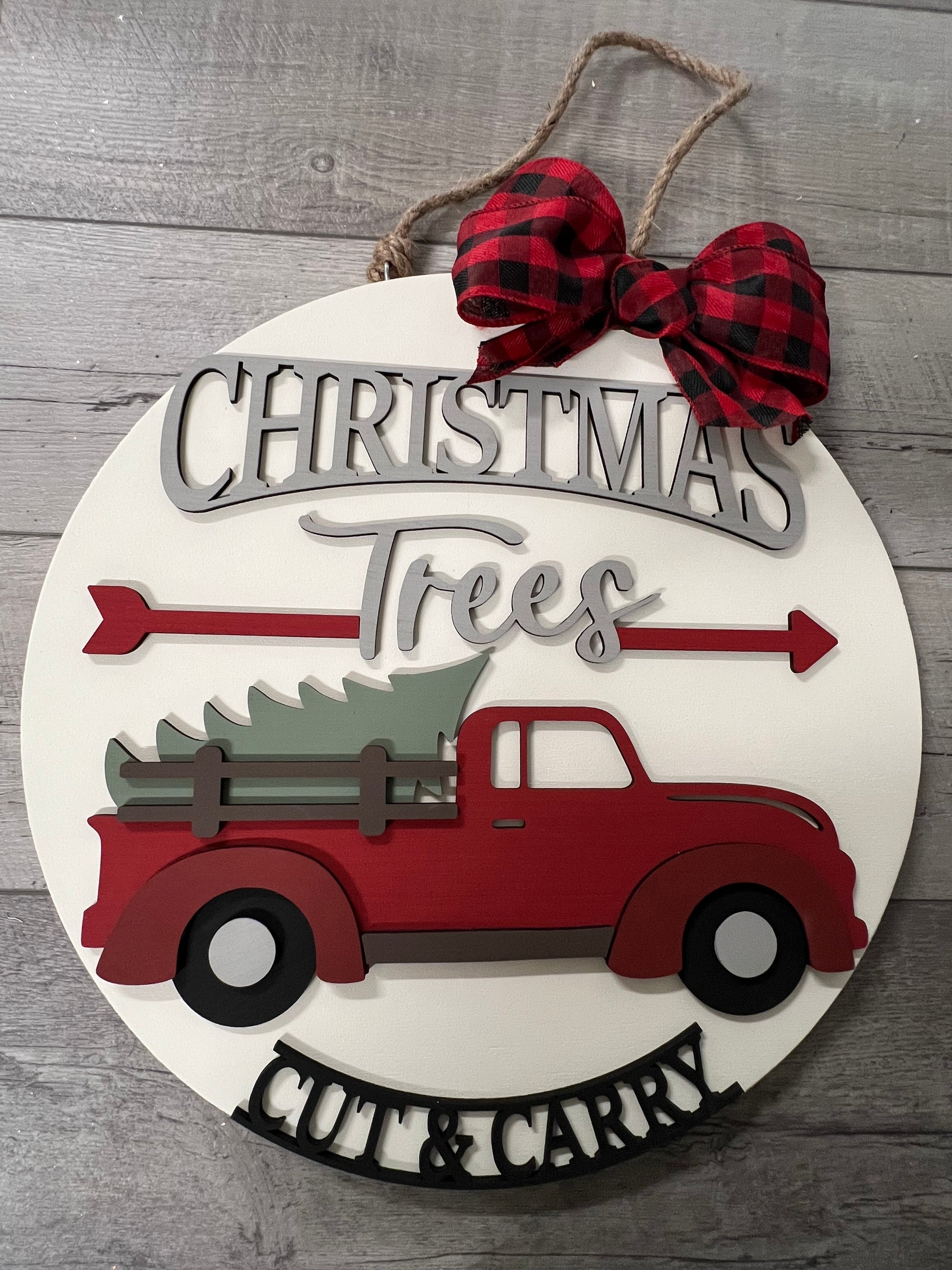 3D 5mm Poplar on a 18” Round Door Hanger with coordinating rope hanger and accent bow!